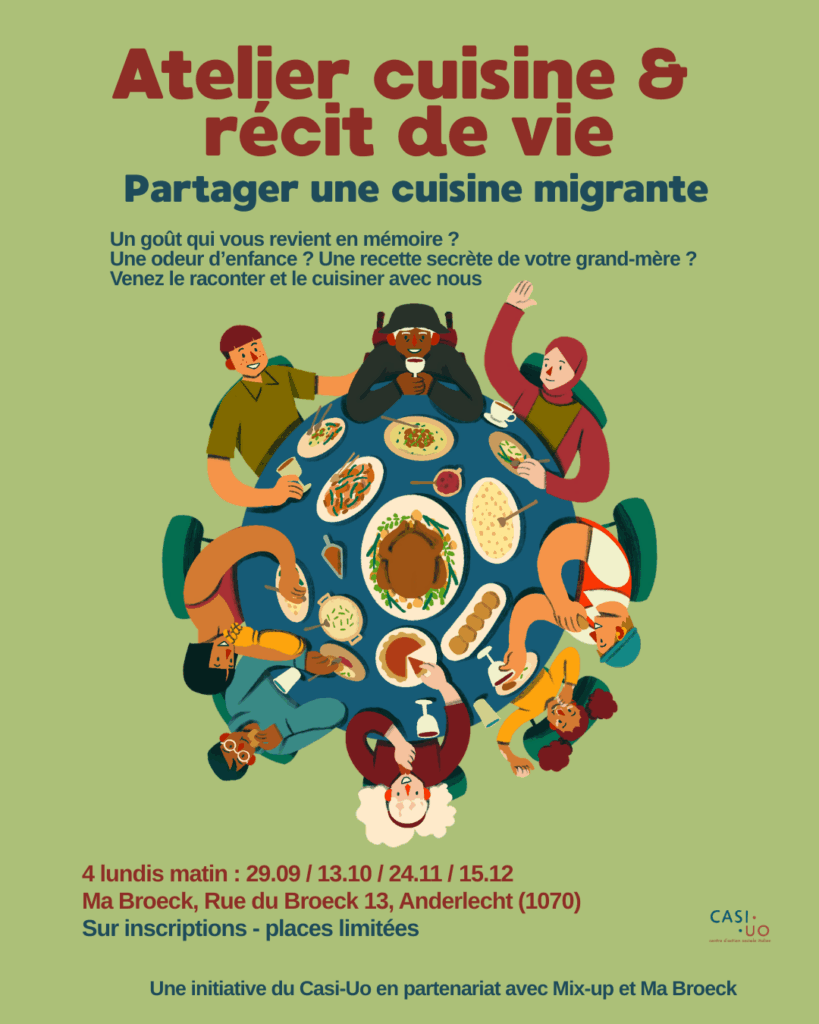 Un atelier pour cuisiner, raconter et réfléchir ensemble à ce que la cuisine transmet : mémoire, migration, culture et rencontres.