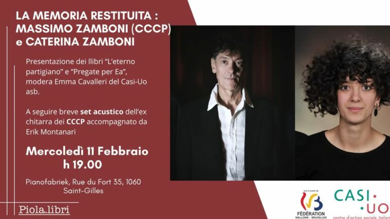 Una serata speciale che unisce parole e musica: oltre all’incontro sui loro nuovi libri « L’Eterno Partigiano » e « Pregate per ea », Massimo Zamboni, storica chitarra dei CCCP, si esibirà in un breve set acustico insieme a Erik Montanari.