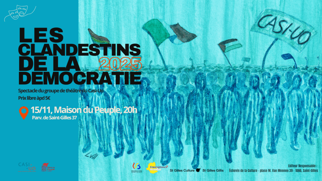 Depuis 2020, le CASI-Uo développe un projet théâtral avec de jeunes adultes arrivés à Bruxelles après la crise de 2008. Fidèle à sa tradition, l’association utilise le théâtre comme outil de réflexion critique et de dénonciation des injustices.