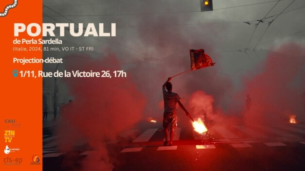 Projection-débat « Portuali » de Perla Sardella (IT)Il primo novembre abbiamo l’occasione di presentarvi il film « Portuali » di Perla Sardella, ad una serata al CFS insieme alla presenza della regista. Porte aperte alle 15:00, il film comincerà alle 16:00 e seguiranno dibattiti e incontri legati al tema del « Comment agir là où l’on se trouve ? » Come agire da dove siamo?È questa la sfida a cui rispondono i membri del CALP (Collettivo Autonomo dei Portuali di Genova), che scelgono di non essere complici della macchina da guerra. Da anni, bloccano i carichi di armamenti di ogni tipo che transitano per il porto più grande d’Europa. In particolare, si oppongono al trasferimento di armi destinate a Israele, utilizzate nel contesto del suo genocidio contro i palestinesi, così come a quelle inviate all’Arabia Saudita per alimentare la sua guerra contro lo Yemen. Praticando un sindacalismo di lotta nonostante la crescente criminalizzazione dei movimenti sociali,…