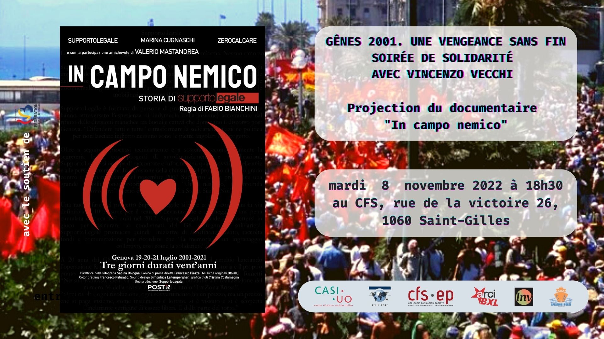 Le serate Paroles sur images hanno lo scopo di suscitare una riflessione e una discussione su diverse tematiche di attualità a partire da un film o da un documentario. Attraverso questa attività incontriamo altre associazioni e ci prendiamo il tempo per discutere, ma anche per sostenere le lotte in corso e diffondere le loro rivendicazioni. Facciamo anche attenzione a creare legami tra l’Italia e il Belgio e sosteniamo modi alternativi di produrre e distribuire opere culturali.