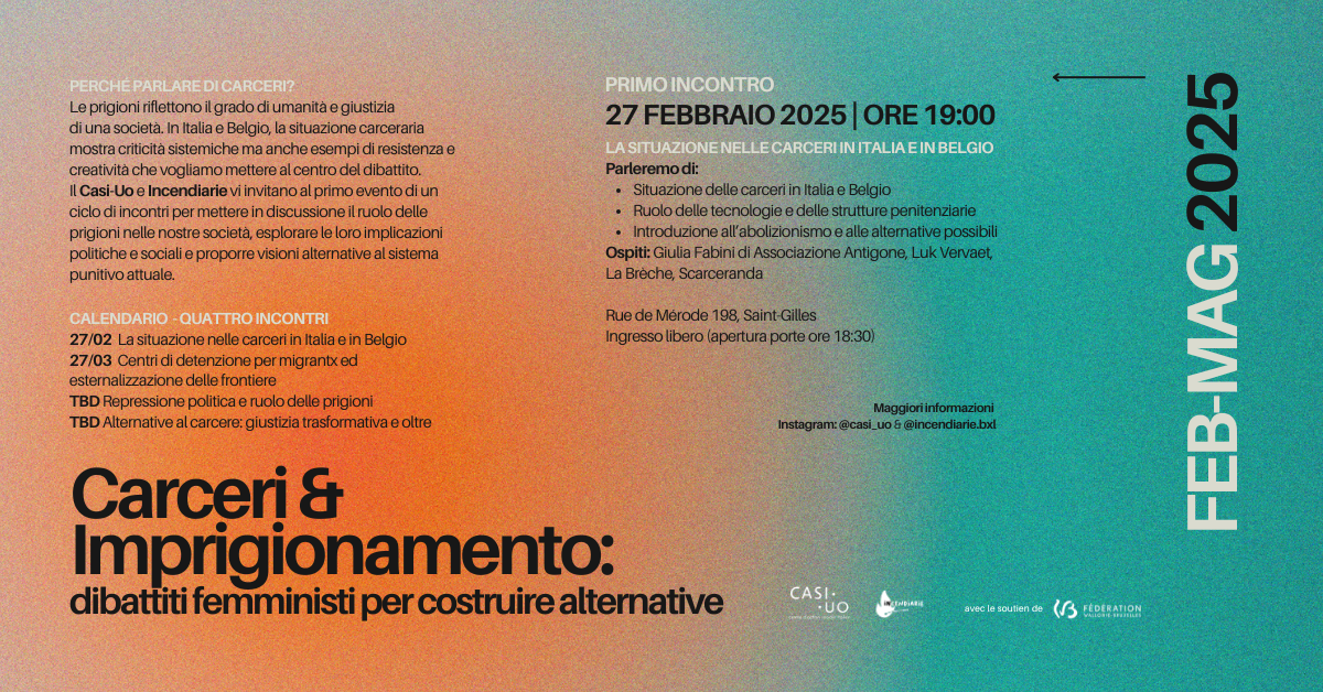 27.02.2025 – Primo incontro del ciclo « Carceri e imprigionamento »: LA SITUAZIONE NELLE CARCERI IN ITALIA E IN BELGIO